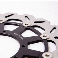 This disc rotor is constructed from high carbon steel. The wave design ensures good heat dissipation under heavy braking sessions, reducing brake fade, minimising warping, and ensuring rotor longevity. The slotted rotor ensures water and dirt are dispersed quickly when braking.