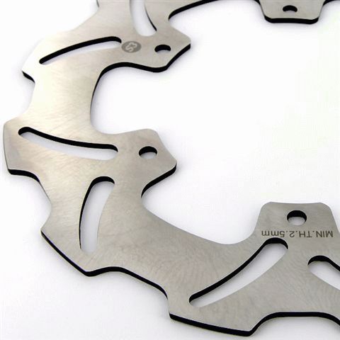 This disc rotor is constructed from 420 stainless steel. The shape of the disc ensures good heat dissipation under heavy braking sessions, reducing brake fade, minimising warping, and ensuring rotor longevity. The slotted rotor ensures water and dirt are dispersed quickly when braking.