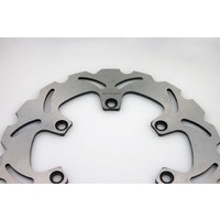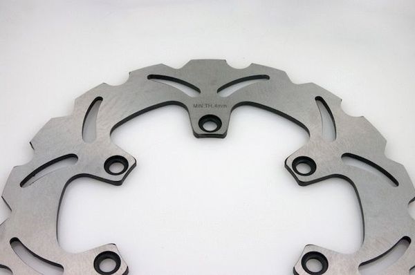 This front disc rotor is constructed from 420 stainless steel. The shape of the disc ensures good heat dissipation under heavy braking sessions, reducing brake fade, minimising warping, and ensuring rotor longevity. The slotted rotor ensures water and dirt are dispersed quickly when braking.