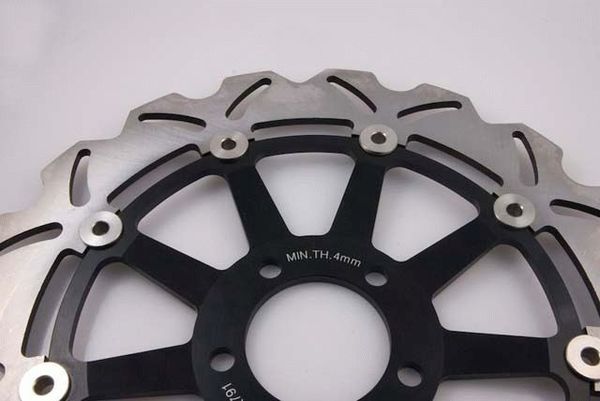 This front floating brake disc rotor is constructed from 420 stainless steel, with a 7075 Aluminium alloy centre hub for light weight. The shape of the disc ensures good heat dissipation under heavy braking sessions, reducing brake fade, minimising warping, and ensuring brake disc longevity. The slotted disc rotor ensures water and dirt are dispersed quickly when braking.