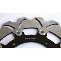 This front floating brake disc rotor is constructed from 420 stainless steel, with a 7075 Aluminium alloy centre hub for light weight. The shape of the disc ensures good heat dissipation under heavy braking sessions, reducing brake fade, minimising warping, and ensuring brake disc longevity. The slotted disc rotor ensures water and dirt are dispersed quickly when braking.