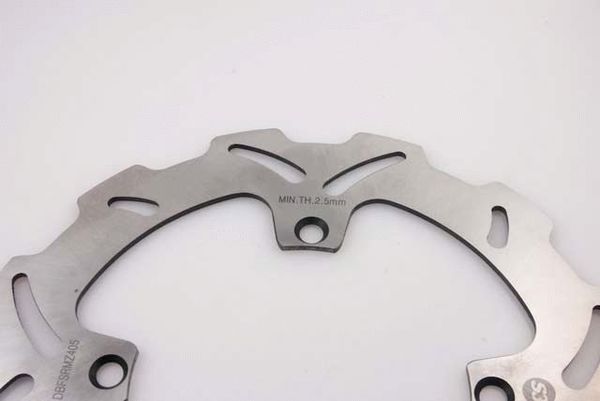This front disc rotor is constructed from 420 stainless steel. The shape of the disc ensures good heat dissipation under heavy braking sessions, reducing brake fade, minimising warping, and ensuring rotor longevity. The slotted rotor ensures water and dirt are dispersed quickly when braking.