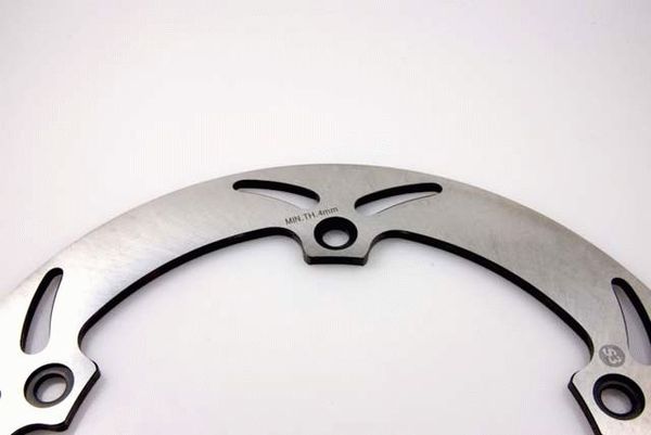This rear disc rotor is constructed from 420 stainless steel. The shape of the disc ensures good heat dissipation under heavy braking sessions, reducing brake fade, minimising warping, and ensuring rotor longevity. The slotted rotor ensures water and dirt are dispersed quickly when braking.