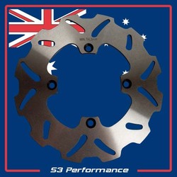 This rear brake disc rotor is constructed from 420 stainless steel. The shape of the disc ensures good heat dissipation under heavy braking sessions, reducing brake fade, minimising warping, and ensuring brake disc longevity. The slotted brake disc ensures water and dirt are dispersed quickly when braking.