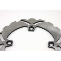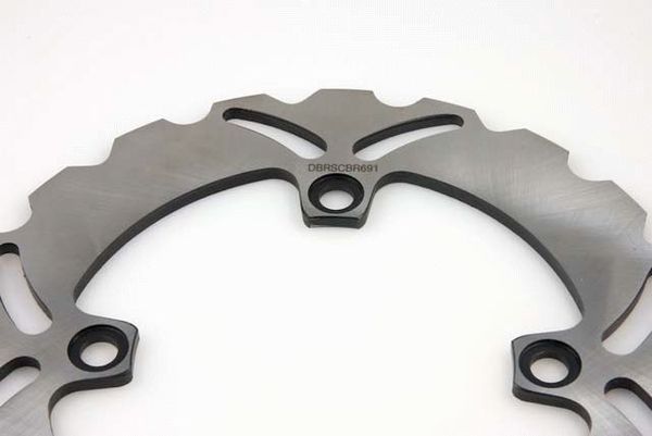 This rear brake disc rotor is constructed from 420 stainless steel. The shape of the disc ensures good heat dissipation under heavy braking sessions, reducing brake fade, minimising warping, and ensuring brake disc longevity. The slotted brake disc ensures water and dirt are dispersed quickly when braking.