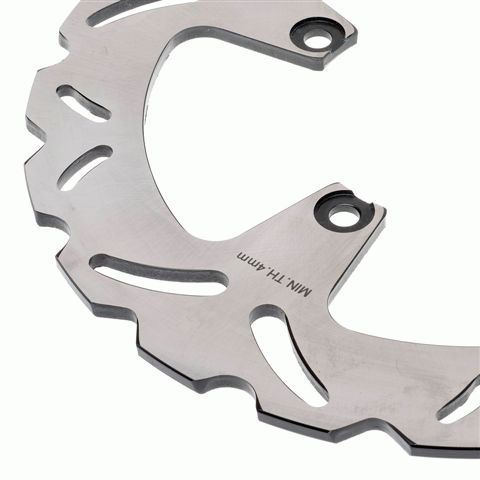 This rear brake disc rotor is constructed from 420 stainless steel. The shape of the disc ensures good heat dissipation under heavy braking sessions, reducing brake fade, minimising warping, and ensuring brake disc longevity. The slotted brake disc ensures water and dirt are dispersed quickly when braking.
