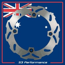 This rear brake disc rotor is constructed from 420 stainless steel. The shape of the disc ensures good heat dissipation under heavy braking sessions, reducing brake fade, minimising warping, and ensuring brake disc longevity. The slotted brake disc ensures water and dirt are dispersed quickly when braking.