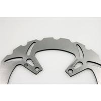 This rear brake disc rotor is constructed from 420 stainless steel. The shape of the disc ensures good heat dissipation under heavy braking sessions, reducing brake fade, minimising warping, and ensuring brake disc longevity. The slotted brake disc ensures water and dirt are dispersed quickly when braking.