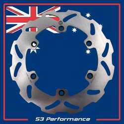 This rear brake disc rotor is constructed from 420 stainless steel. The shape of the disc ensures good heat dissipation under heavy braking sessions, reducing brake fade, minimising warping, and ensuring brake disc longevity. The slotted brake disc ensures water and dirt are dispersed quickly when braking.