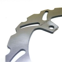 This rear brake disc rotor is constructed from 420 stainless steel. The shape of the disc ensures good heat dissipation under heavy braking sessions, reducing brake fade, minimising warping, and ensuring brake disc longevity. The slotted brake disc ensures water and dirt are dispersed quickly when braking.