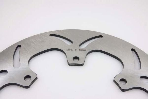 This rear brake disc rotor is constructed from 420 stainless steel. The shape of the disc ensures good heat dissipation under heavy braking sessions, reducing brake fade, minimising warping, and ensuring brake disc longevity. The slotted brake disc ensures water and dirt are dispersed quickly when braking.