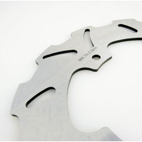 This rear brake disc rotor is constructed from 420 stainless steel. The shape of the disc ensures good heat dissipation under heavy braking sessions, reducing brake fade, minimising warping, and ensuring brake disc longevity. The slotted brake disc ensures water and dirt are dispersed quickly when braking.