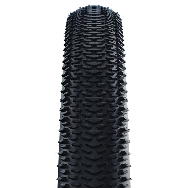 Developed with the best athletes in the world, the G-One R Pro is one of the fastest and safest gravel tire Schwalbe has ever built. It stands for exceptional performance and outstanding control, paired with a robust appearance. As an all-rounder, it is suitable for various types of terrain and rolls surprisingly fast on firm gravel segments and asphalt tracks thanks to its close-meshed lug configuration. The tread pattern with boomerang studs and angled side lugs offers sufficient grip even in wet conditions. This makes the G-One R Pro a safe choice for routes with unfamiliar terrain and fast gravel sectors.