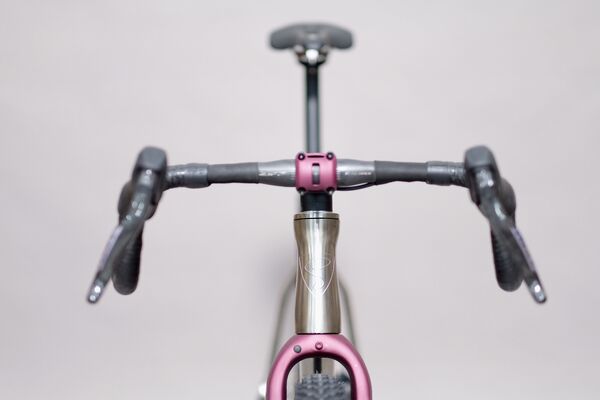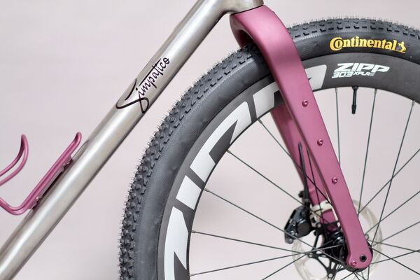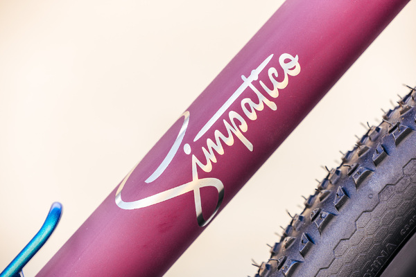 Simpatico Gamma Titanium gravel frame with a brushed finish, Cerakote Head badge