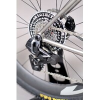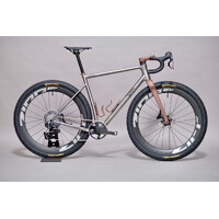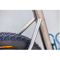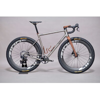 The Simpatico Gamma titanium grave bike is built to be fast and agile on gravel, making it ideal for racing down dirt roads or tackling your next gravel challenge. The Simpatico Gamma titanium gravel bike is the ultimate choice for those who seek smooth and effortless riding combined with fast and stable geometry. The Simpatico Gamma is tailored to be 1x only, maximising mud clearance, optimizing chain line, and the retention benefits of a narrow wide 1 x derailleur system. The Simpatico Gamma presents as a bike destined to venture off-road and at speed.