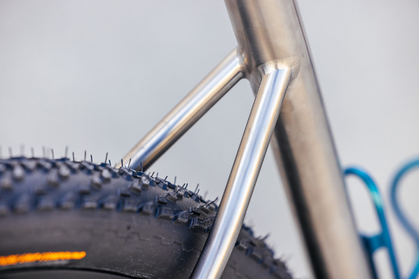 Titanium Frame Grade 9 Ti-3AI-2.5v combines a modern 3d printed titanium headtube and rear dropouts with the traditional welded aesthetic of the frame.