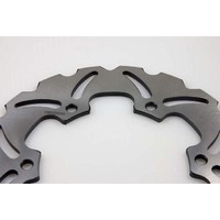 This rear brake disc rotor is constructed from 420 stainless steel. The shape of the disc ensures good heat dissipation under heavy braking sessions, reducing brake fade, minimising warping, and ensuring brake disc longevity. The slotted brake disc ensures water and dirt are dispersed quickly when braking.
