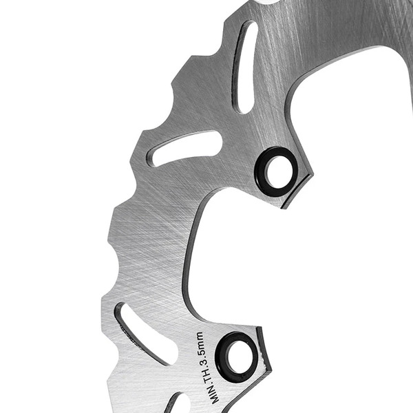 This Stopp rear brake disc rotor is constructed from 420 stainless steel. The shape of the disc ensures good heat dissipation under heavy braking sessions, reducing brake fade, minimising warping, and ensuring brake disc longevity. The slotted brake disc ensures water and dirt are dispersed quickly when braking.