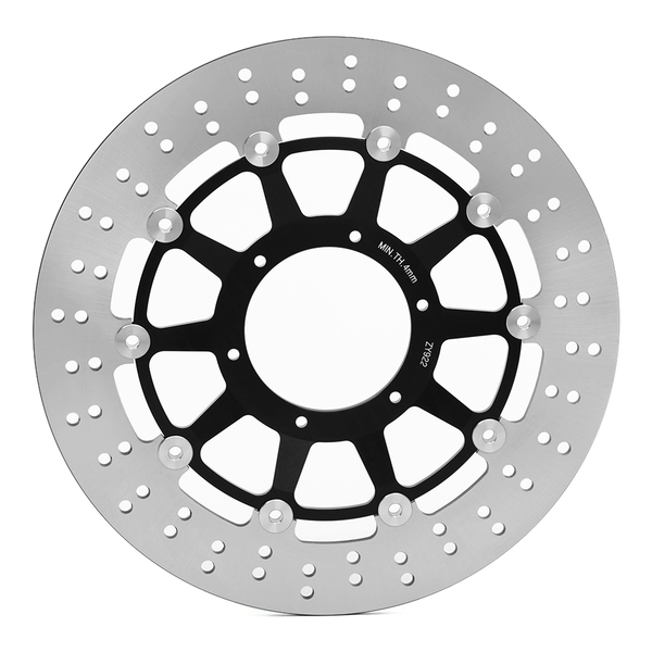 The front floating brake disc rotor is constructed from 420 stainless steel, with a 7075 Aluminium alloy centre hub for light weight. The drilled disc rotor ensures water and dirt are dispersed quickly when braking.