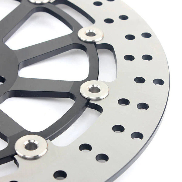 The front floating brake disc rotor is constructed from 420 stainless steel, with a 7075 Aluminium alloy centre hub for light weight. The drilled disc rotor ensures water and dirt are dispersed quickly when braking.