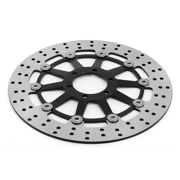 The front floating brake disc rotor is constructed from 420 stainless steel, with a 7075 Aluminium alloy centre hub for light weight. The drilled disc rotor ensures water and dirt are dispersed quickly when braking.